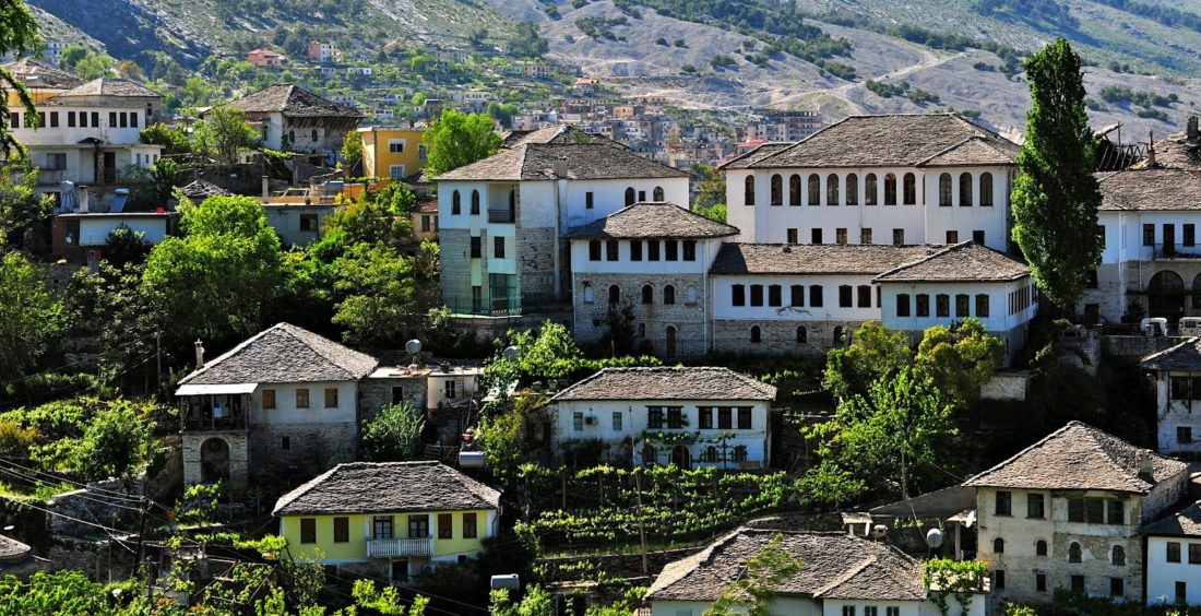 Gjirokastër is a city in the Republic of Albania and the seat of Gjirokastër County and Gjirokastër Municipality. It is located in a valley between the Gjerë mountains and the Drino, at 300 metres above sea level. Its old town is a UNESCO World Heritage Site, described as “a rare example of a well-preserved Ottoman town, built by farmers of large estate”. The city is overlooked by Gjirokastër Fortress, where the Gjirokastër National Folklore Festival is held every five years. It is the birthplace of former Albanian communist leader Enver Hoxha, and author Ismail Kadare.