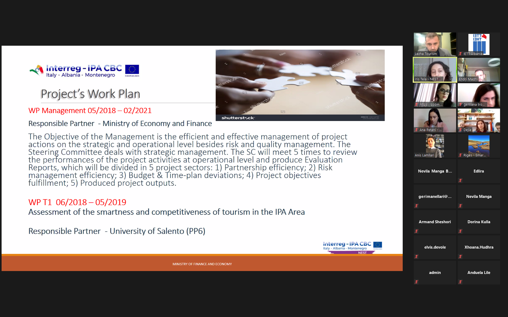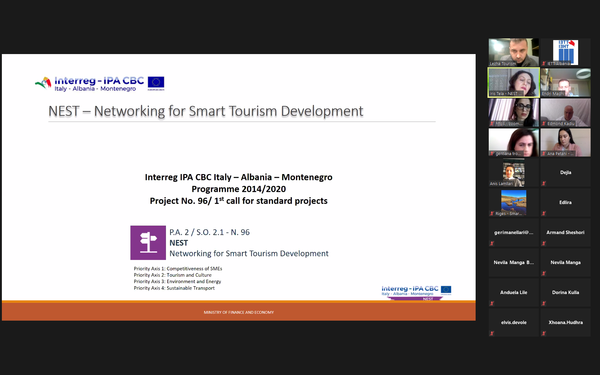 Në kuadër të eventeve sensibilizuese organizuar nga Projekti NEST dhe Ministria e Financave dhe Ekonomisë, për Interreg IPA CBC Italy – Albania – Montenegro, IETT mori pjesë në takimin online dy-ditor i cili kishte në fokus diskutimin e çështjeve për krijimin e një laboratori “gjallues” (living lab), për zhvillimin e turizmit inteligjent në Shqipëri.