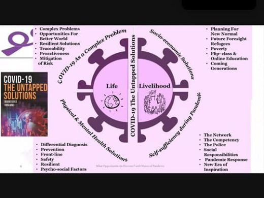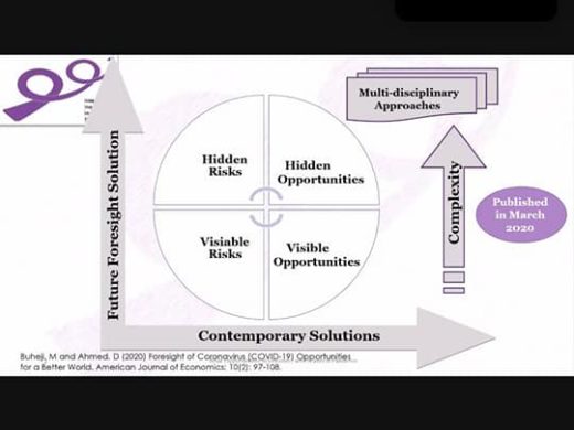 Gjatë fjalës së tij, ai bëri një analizë të rreziqeve socio-ekonomike të dukshme dhe të fshehura, si dhe mundësive të krizës pandemike. Një tjetër pikë kryesore e prezantimit të tij ishin përbërësit që kontribuojnë në zbulimin e mundësive që kërkojnë një mendim dhe gjendje specifike. Ai e mbrojti tezën e tij duke e mbajtur atë pozitive, sepse vuri në dukje se sa më shumë valë sjell pandemia aq më shumë mundësi kemi për të zbuluar.