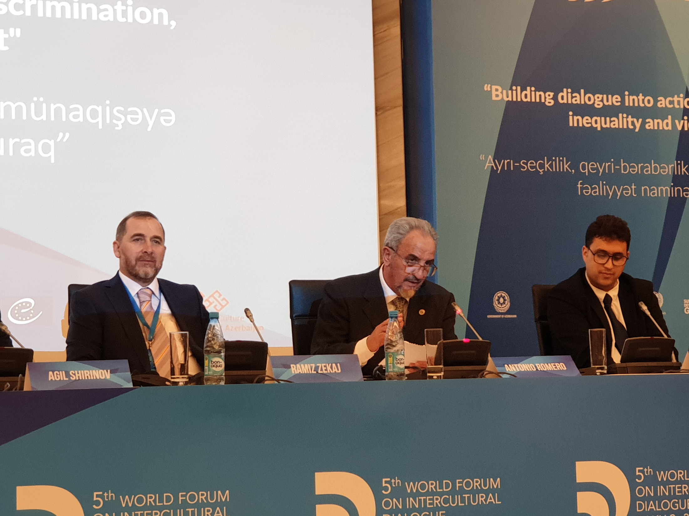 Forumi i pestë botëror për dialog ndërkulturor nën moton “Ndërtimi i dialogut te drejtpërdrejtë kundër nënvlerësimit, pabarazisë dhe konfliktit të dhunshëm” u mbajt në datat 2 dhe 3 maj në Baku, Azerbaxhan. Ky forum u organizua nga Qeveria dhe Ministria e Kulturës së Azerbaxhanit, në bashkëpunim me Organizatën e Kombeve të Bashkuara për Edukim, Shkencë, dhe Kulturë (UNESCO), Aleancën Qytetare të Kombeve të Bashkuara, Organizatën Botërore të Turizmit, Këshillin e Europës, Organizatën Islamike për Edukim, Shkencë dhe Kulturë (ISESCO), Organizata e Ushqimit dhe Bujqësisë (FAO) dhe Qendra Veri-Jug e Këshillit të Europës.
