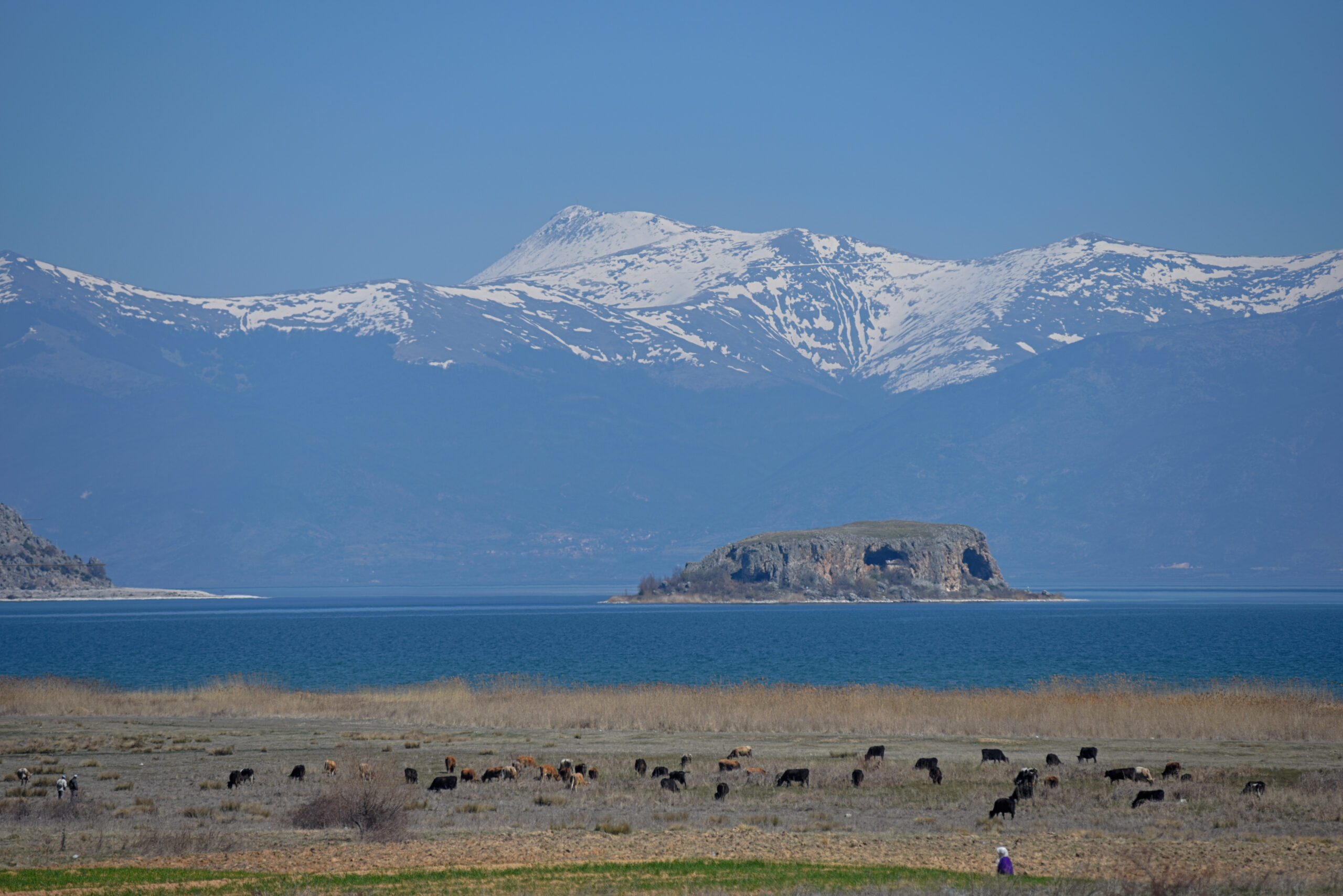 Një mbishkrim në faqen jugore, më i hershmi në këtë kishë i përket vitit 1345 dhe fazës së parë të zbukurimit të kësaj kishe me afreske. Ishulli ka gjatësi rreth 800 metra e gjerësi rreth 200 metra dhe rrethohet nga shpate shumë të pjerrët, me përjashtim të pjesës perëndimore të tij. Në këtë ishull ka bimësi natyrore barishtore dhe shumë pak shkurre, shpella e zgavra karstike.