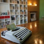 Next to the books is the fireplace, opposite the fireplace, the writer’s desk, with his typewriter.