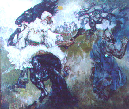 Trimat në fillim hakërrohen me fjalë, pastaj nis një dyluftim nga më të egrit dhe Gjergj Elez Alia më në fund del fitimtar duke ia prerë kokën armikut. Pastaj kthehet në shtëpi, thërret përreth tij fshatarët, u fal atyre gjithçka ka nga pasuria e vet dhe u lë amanet të motrën.