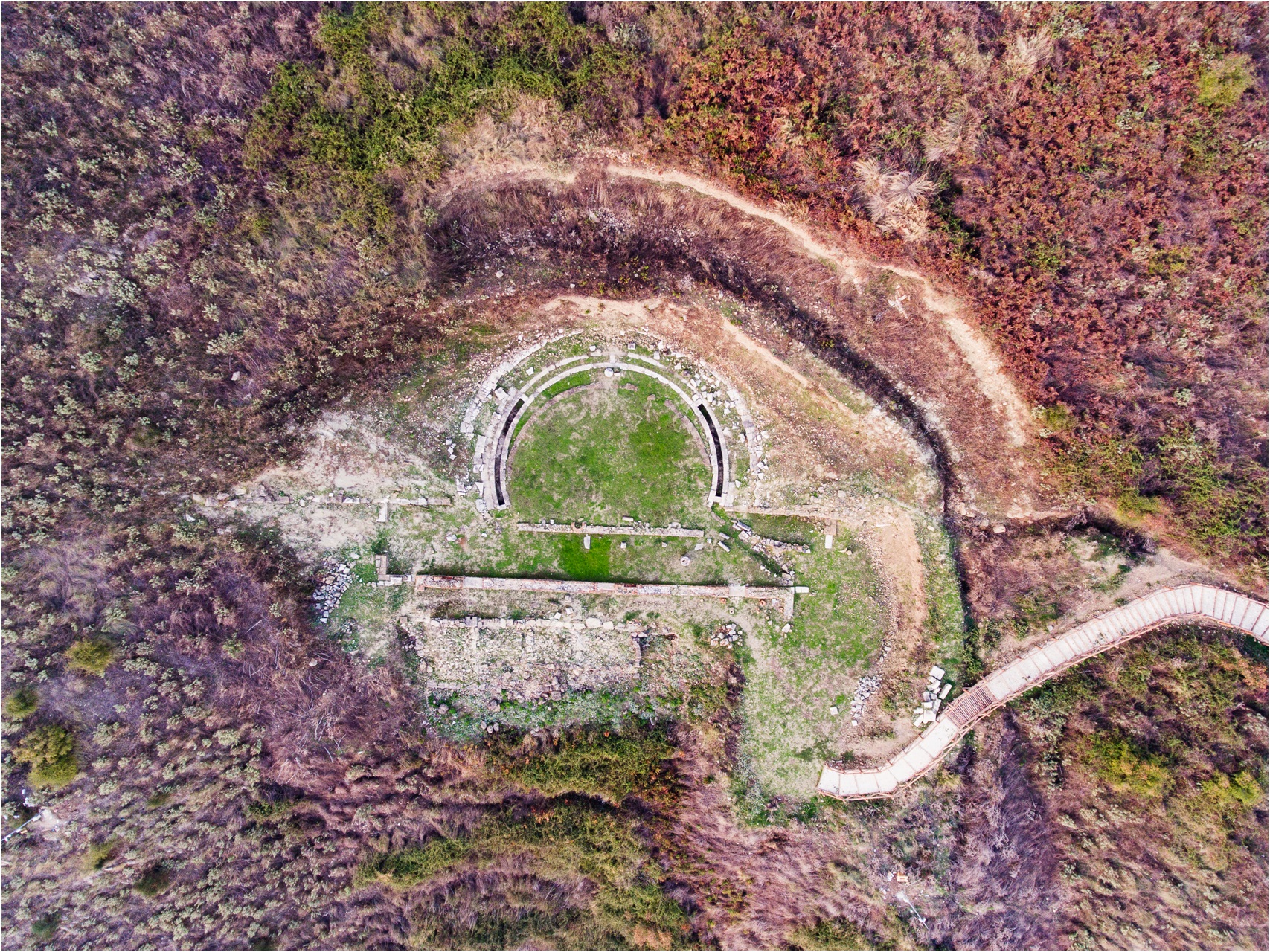 Hapësira shumë e madhe e teatrit (rreth 17 000 vendeshe), që ndodhet në mes të kodrës me hapje në drejtim të Manastirit të Dyzetë Shënjtorëve shërbente në atë kohë si vend i mbledhjeve të “Publikut të Epirotëve rreth Finiqit”, në të cilat merreshin demokratikisht vendimet për paqen ose luftën ose shqyrtimi i çështjeve. Teatri është rindërtuar tre herë, pasi nga gërmimet u zbuluan tre konstruksione të ndryshmëm. Faza e parë i përket fillimeve të shekullit të IV para Krishtit. Materiali ndërtues është vendas, veçanërisht guri i skenës ka ardhur nga e njëjta kodër. Faza e dytë e ndërtimit i përket shekullit të III-të para Krishtit. Zgjerimi i skenës u diktua në çastin kur Finiqi u bë qendra e Kaonisë dhe kryeqytet i Epirit. Teatri që u ndërtua në këtë fazë i tejkalon dhe përmasat e teatrit të Dodonit. Në skenën e teatrit u gjetën piedestale shumë të mëdhenj me gjurmë këmbësh përsipër, që mbanin gjithashtu shtatore shumë të mëdha perëndish ose perandorësh të lashtë.