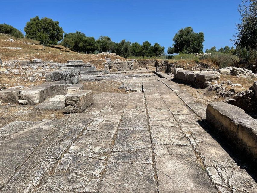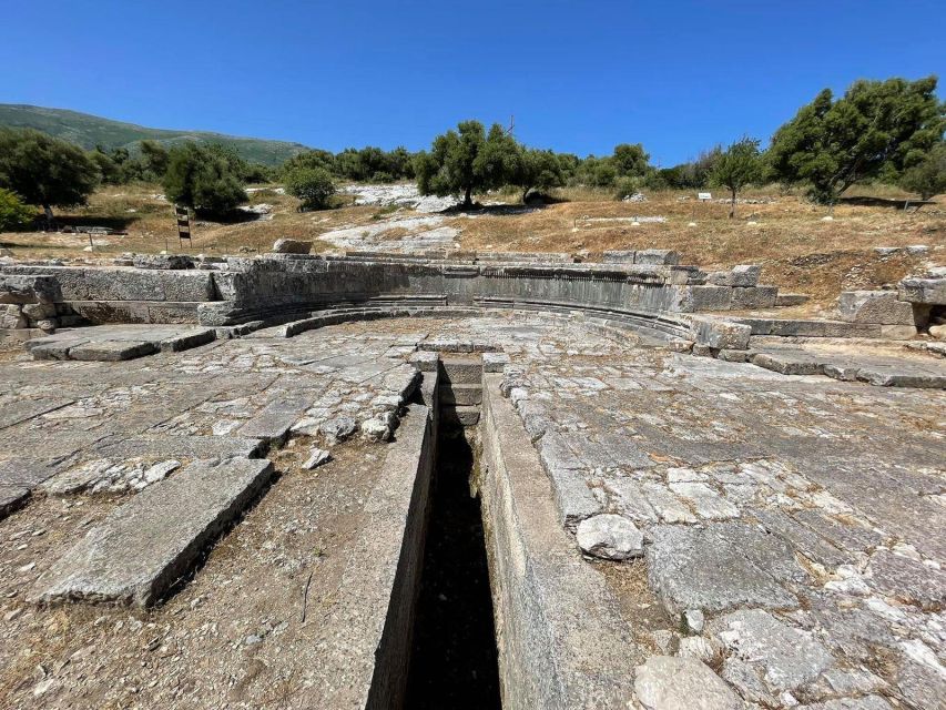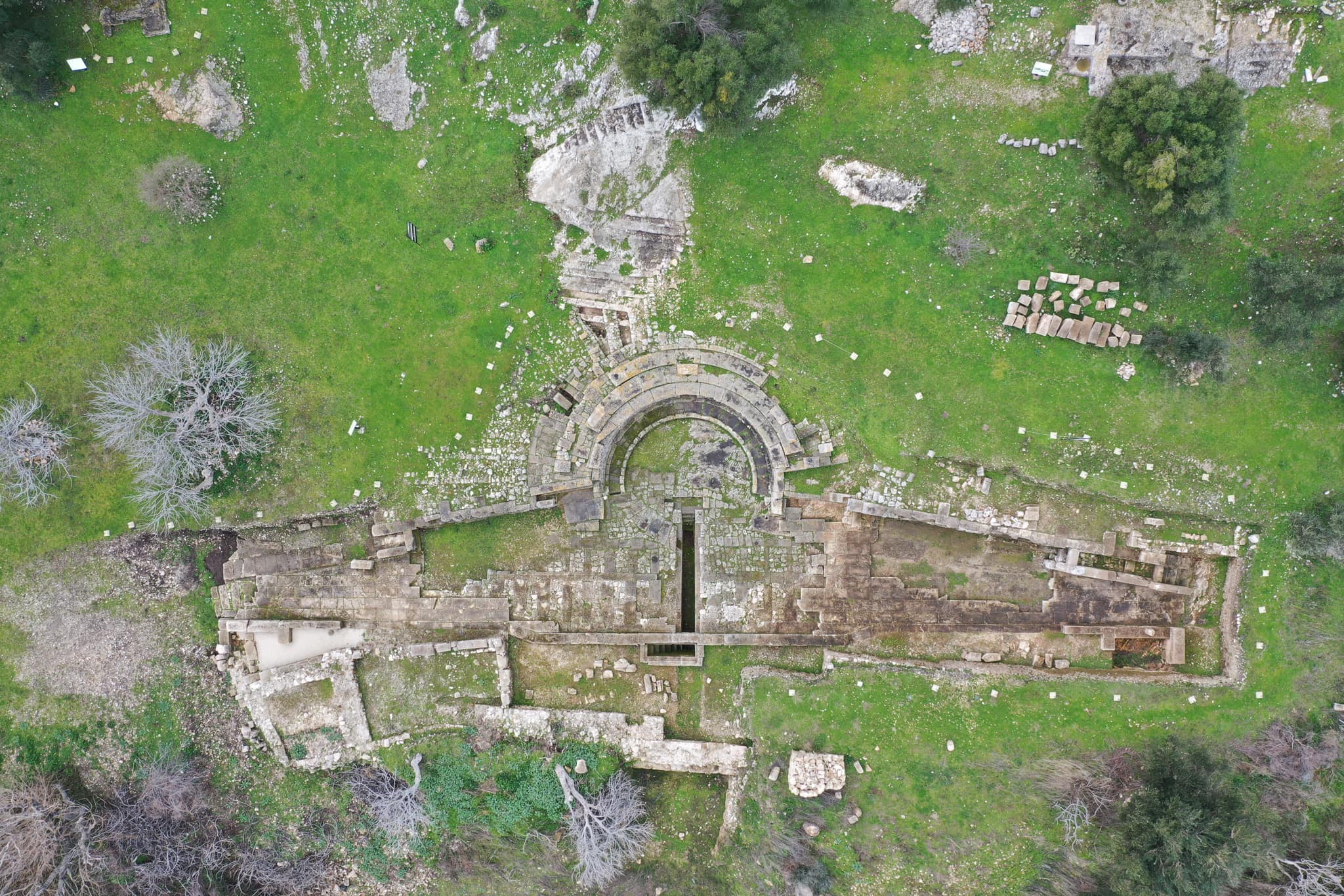 Në tarracën jugore janë zbuluar rrënojat e një ndërtese të tipit monopter, një monument atipik me formë katrore dhe unik për botën antike, i datuar në shekullin III-II p.e.s.