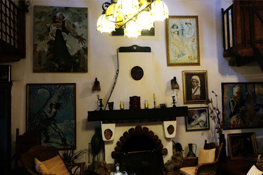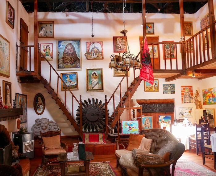 Në katin e parë ndodhet dhoma e pritjes ku zhvilloheshin aktivitete të ndryshme afër oxhakut, dhe vendi është i mbushur me piktura të rralla. Në katin e dytë gjenden dhomat e gjumit, të mbushura gjithashtu me piktura dhe portrete. Shkallët që ndërlidhin katet janë prej druri.