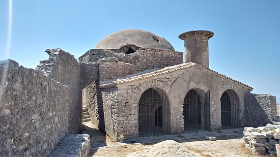 The mosque is situated near the main entrance of the castle, and although it has suffered some damage, it is relatively well preserved. It is a hall-type mosque with a dome, with massive proportions, built with local materials and without any special care. It is made of worked stone and has considerable dimensions. Its base is polygonal, as is the body of the minaret.