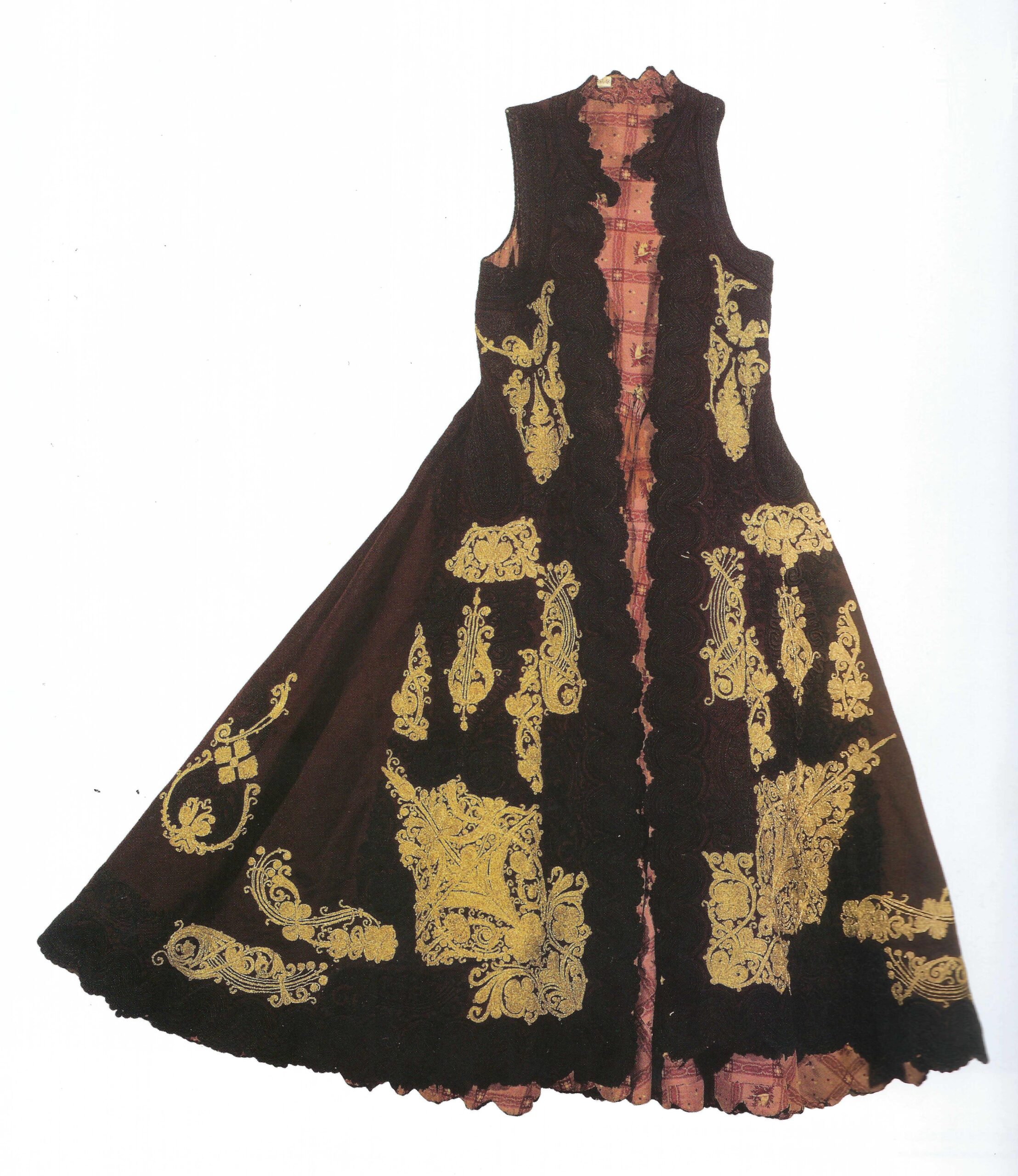 The clothing of the wealthy women of this city is distinguished by long velvet dresses adorned with gold threads, or velvet skirts and jackets. These outfits were accompanied by embroidered vests and belts with gold.