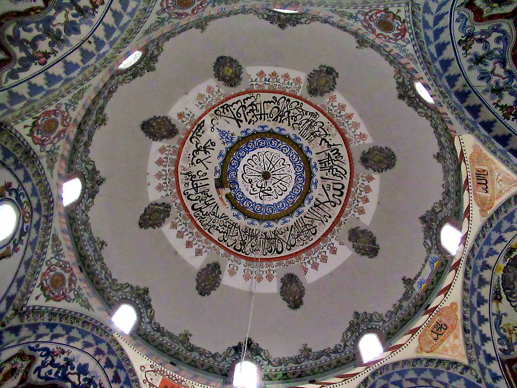 Në pjesën e brendshme, kupola është e pikturuar me motive florale dhe islame në tri fazat e punimeve të saj. Dy fazat e para të pikturave u takojnë shekujve XVI-XVII të punuar me teknikën “al seko”, kurse faza e tretë i takon periudhës së shekullit XIX të punuar në stilin Barok, ku kryesisht ngjyra e kaltër është dominuese.